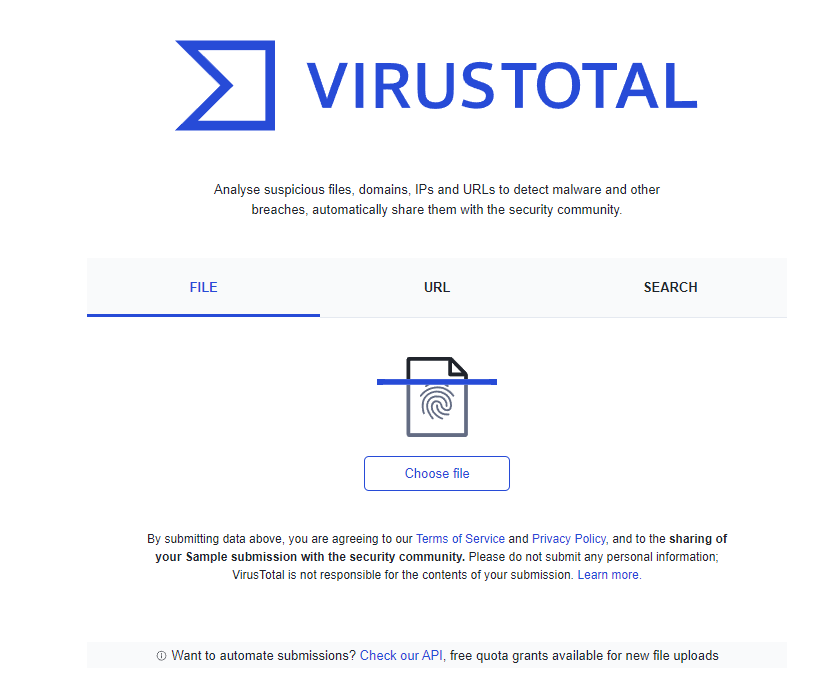 Analyse suspicious files and URLs to detect types of malware, automatically share them with the security community
