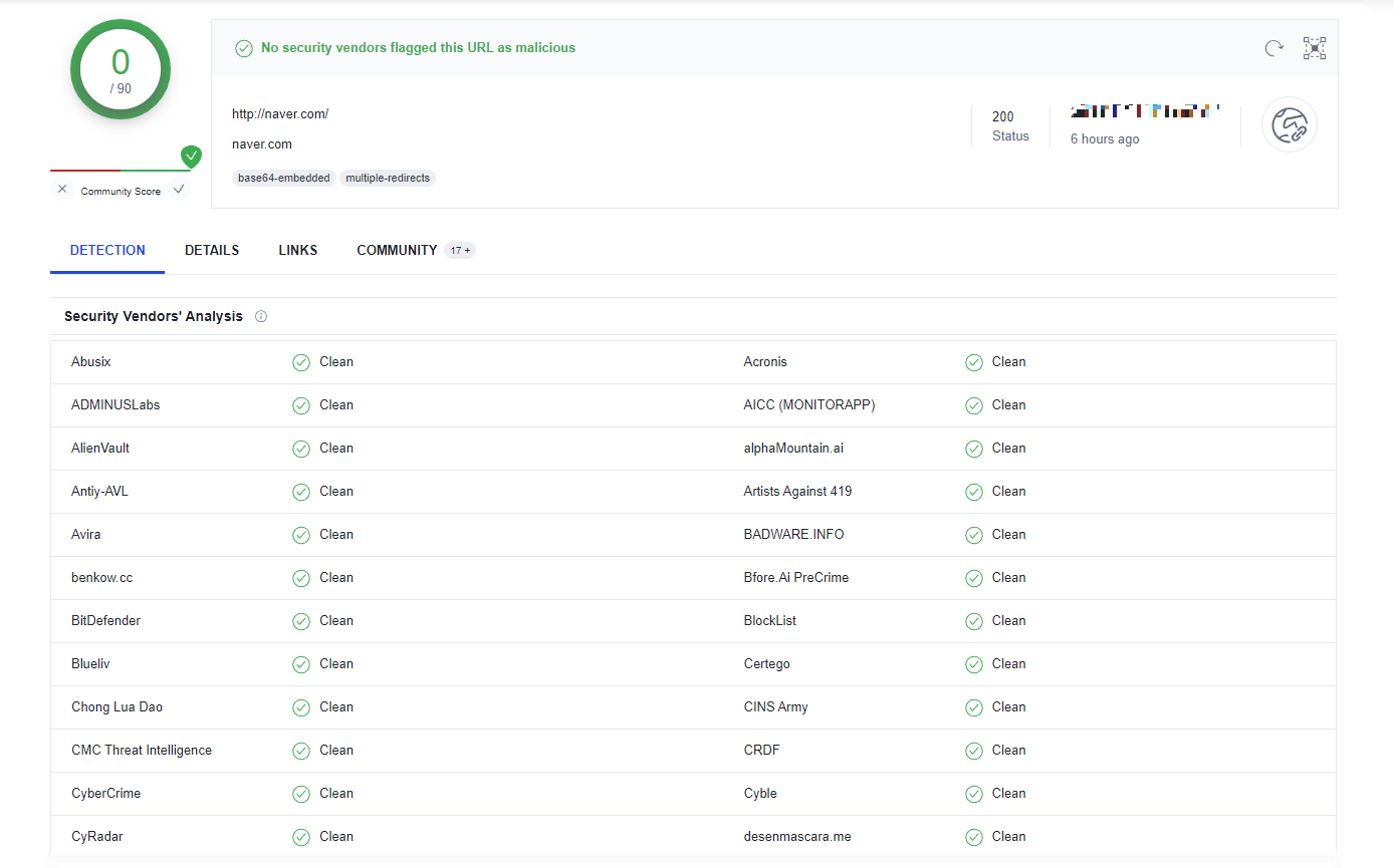 여기에서 이상이 없다고 해도 워낙 고도화된 바이러스가 많아서 100% 다 막을 순 없겠지만 쉽고 빠른 방법이기 때문에 평상시에 사용하기 좋은 사이트 같습니다.